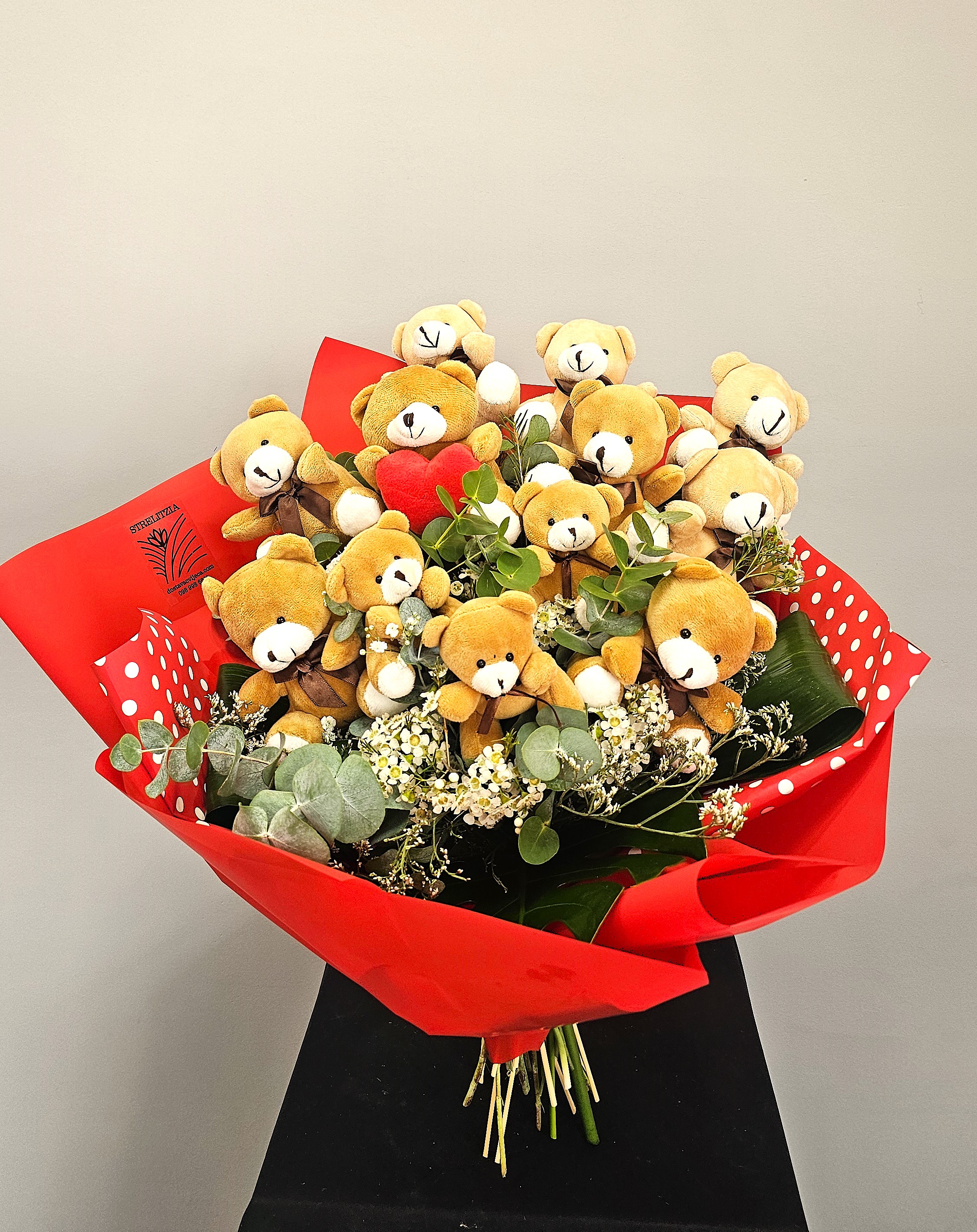 Mekani rudlavi medek, nosi poruku prigodno uklopljenu uz poklon buket. (kliknite na sliku)